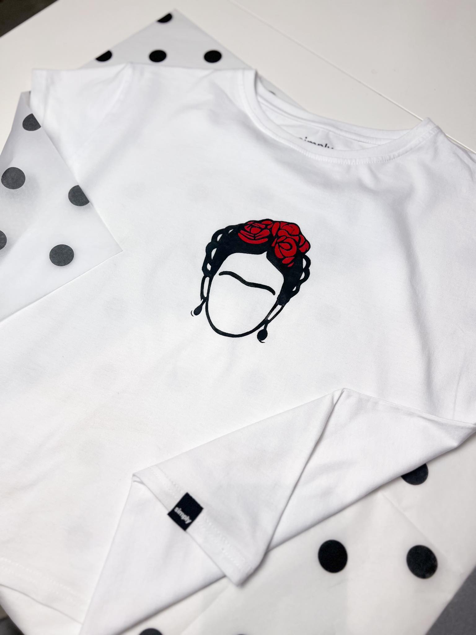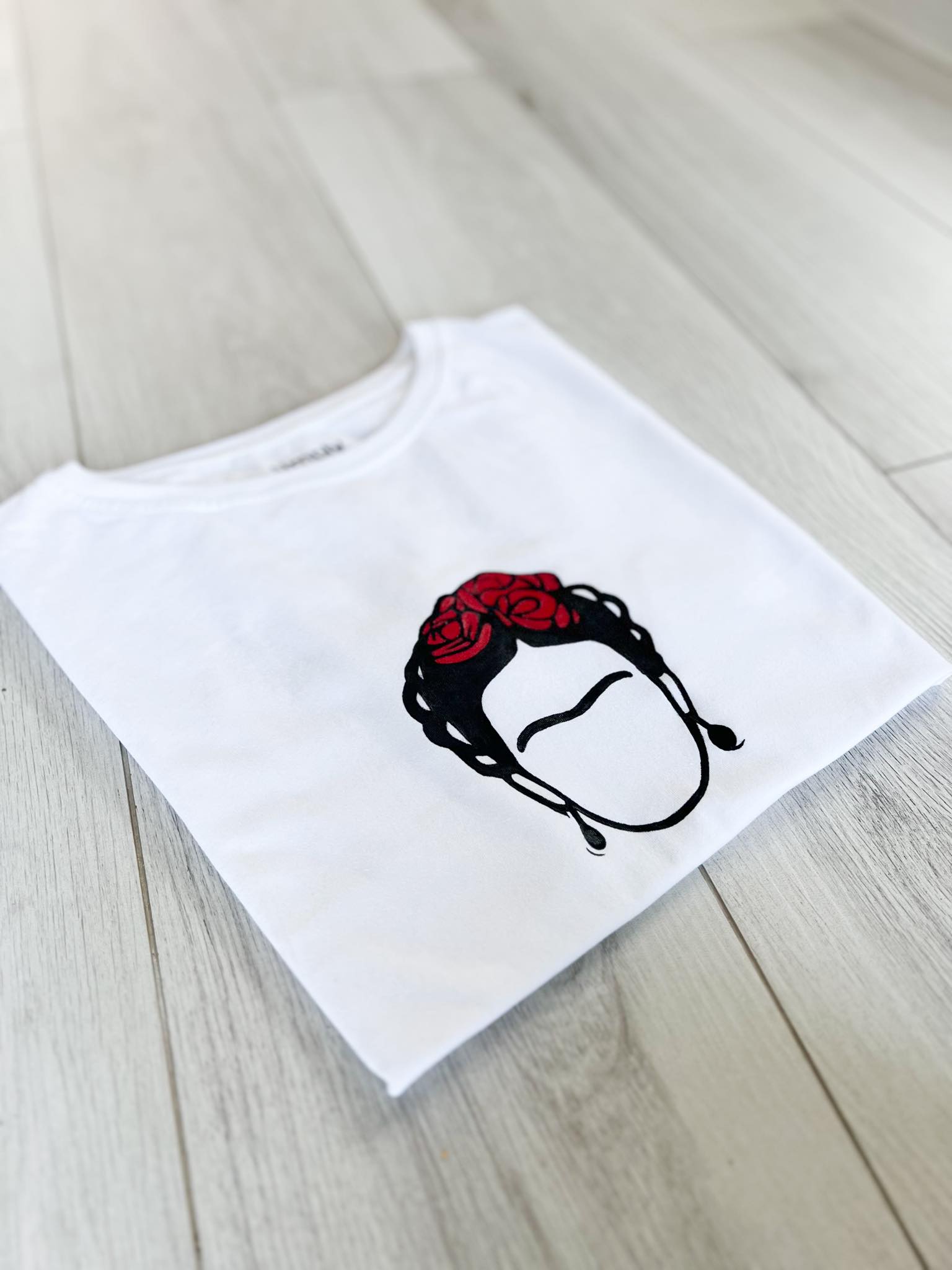 Koszulka damska z ręcznie malowanym motywem Fridy.